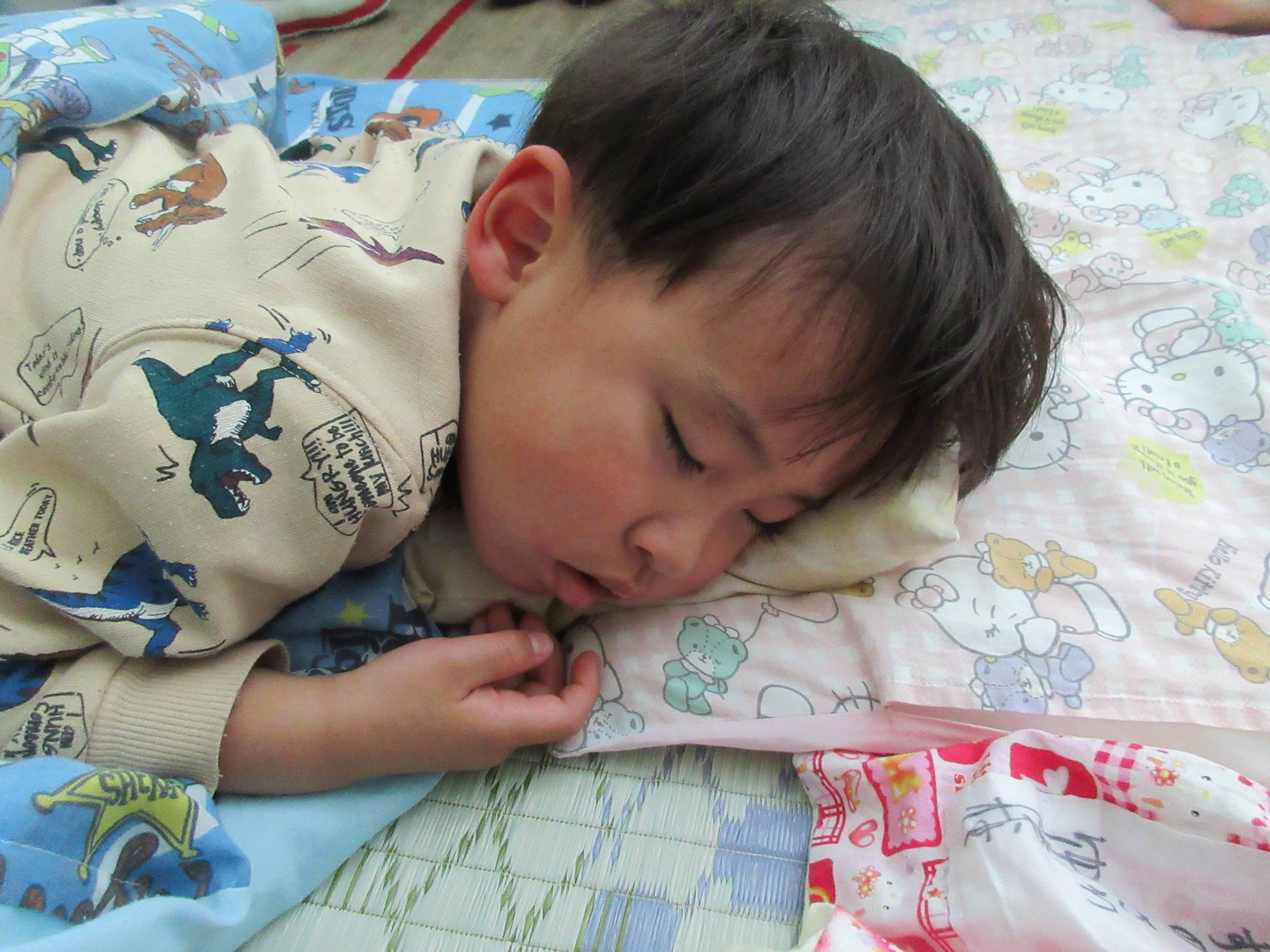 園の様子 2021.02.17 すやすや...おひるね中... 年少さんもお昼寝が明日で終了となりました。入園当初はお昼寝が苦手だったひまわりさんですが、今ではすやすやとしっかり眠っています。「とんとんして!」という子ども達のリクエストにこたえ、順番にとんとんしていくうちに、ほとんどの子が眠ってしまいました。子ども達の寝顔がとってもかわいくて、思わずパシャリ!この一年でたくさん成長してくれたなあと感じる一日でした。