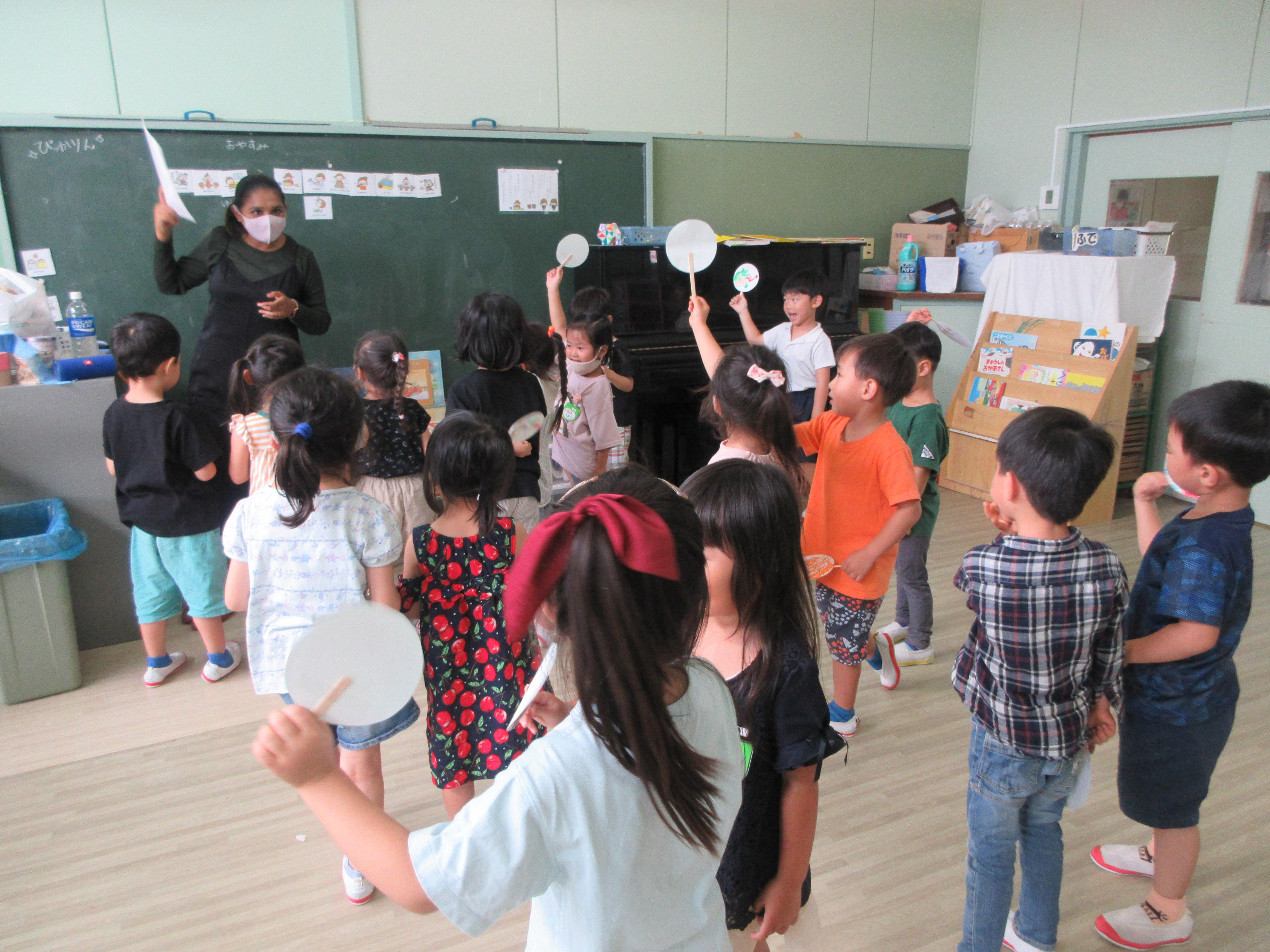 園の様子 2021.08.24 2学期、初めての英語教室でした! 今日は二学期になり初めての英語教室でした。 子ども達も久しぶりではありましたが、先生の真似をしながら沢山体を動かして活動していました。 子ども達の中には英語で言ってみている子もいましたよ!!