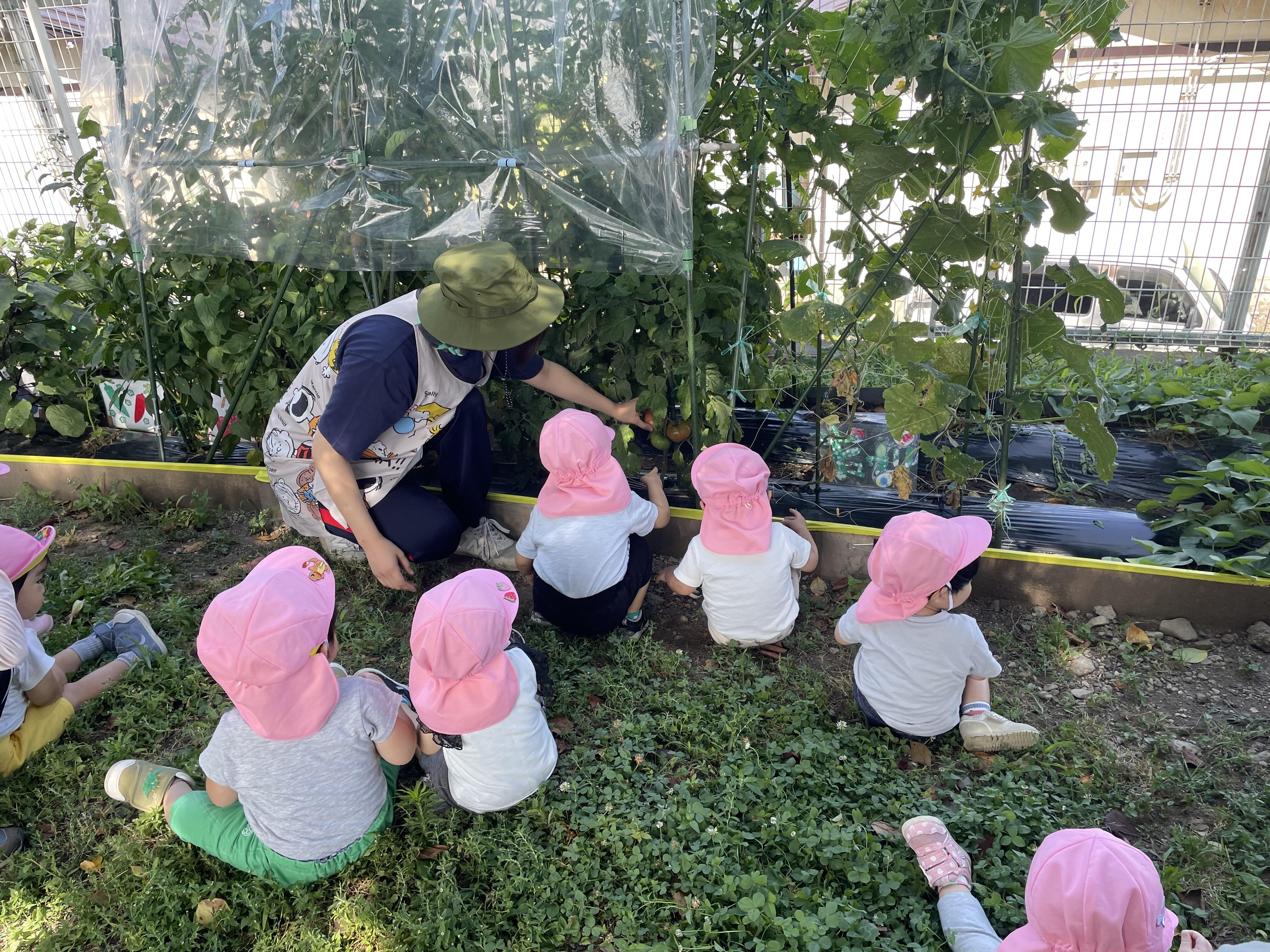 今日は畑に野菜を収穫しに行った後お部屋の中で収穫した野菜をスタンプにして楽しんだたんぽぽ組の子ども達です。保育者が見本として野菜スタンプのやり方を説明している時には興味津々に見ていた子どもたち。いざ子ども達が制作する番になると野菜を食べると思ったのか・・後ずさりしたり恐る恐る触ったりする姿もありました。ですが保育者と一緒に野菜スタンプをペッタンしていく中で「ぺったん!」「わぁ~!」と声を出しながらにこにこして楽しんでいました!野菜が苗からどんどんと生長し収穫までの様子を見ることや実際に収穫した野菜に触れることで苦手な野菜にも興味を持ち食べてみようかなと思ってもらえたら嬉しいなと思います。